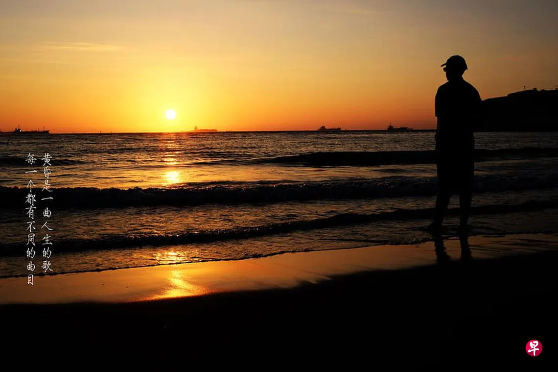 那日,突发心愿,想到海滨追落日。于是,拎了背囊及相机到西子湾的长滩。滩上早已有不少像我一般的人,手上拎着手机,多次对着45度角挂着的太阳。我踏着西子湾特有的黑沙长滩,寻找一个有利的角落等待落日。到了海湄,听得浪声喧哗,晚风拂面。海面也泛起金光。见水湄有女戏浪,随手拿起相机,将伊收入记忆。谁知伊竟朝我走来,我心里暗地里惊了。难道我冒犯了她不?她走近时,笑容满面:先生!可以帮我拍一张像吗?要有落日的。我当然义不容辞啦。