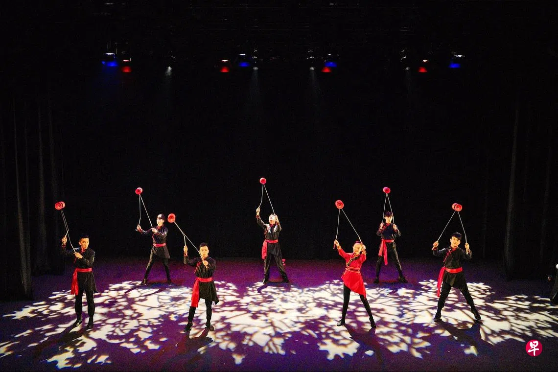 除了本地团体,海外华人艺术团体也有佳作奉献——来自马来西亚的扯铃团队“DiAbolution”将在《铃鸣春晓》演出上,为新加坡观众带来他们的原创作品:《侠》与《魂》。这两支作品表达了DiAbolution对于传统文化的坚守,作品在时间和空间中穿梭,从古侠风、汉元素,到充满未来感的“赛博朋克”(Cyberpunk),一一尽收,并在造型、音乐、道具上,融入创新的可能性和艺术价值,带给观众集惊喜和感官于一体的视觉飨宴。