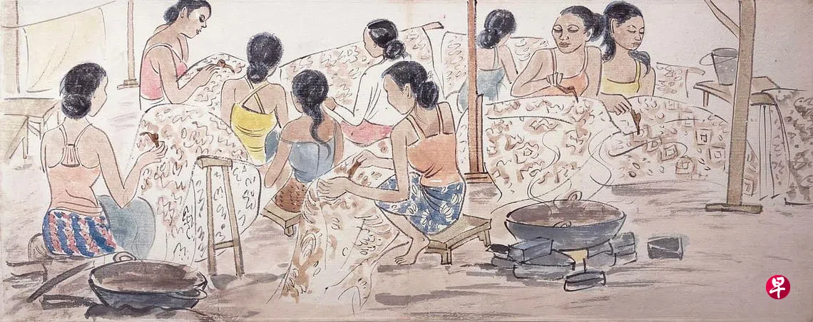展览主打作品是先驱画家钟四宾在1950年代创作的彩墨画《峇厘岛生活》(21×107厘米),以中国传统手卷细笔描绘了峇厘风情,拼合两幅场景:右边是一群峇厘女子室内做蜡染,左边是村民在户外的日常生活,结合东西方艺术特点创作而成。