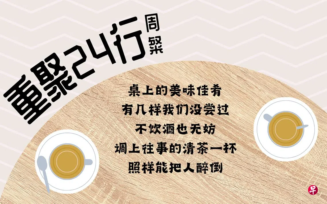 桌上的美味佳肴 有几样我们没尝过 不饮酒也无妨 调上往事的清茶一杯 照样能把人醉倒