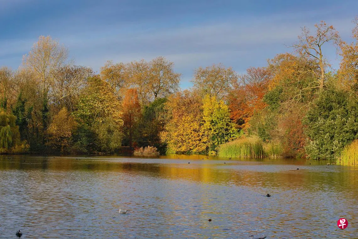 那一天,沉静温婉的巴特西公园突然风云变色,像发疯似地,风也歇斯底里,雨也歇斯底里。一棵棵百年老树不知何故激动得全身颤抖,不断发出“吼……吼……”的抗议,还把它们身上的叶子甩落一地。躲在草丛中、树荫里的老松鼠更是吓得四处乱窜,像逃难一般。人工湖中向来处变不惊的水鸟、野鸭和天鹅也从来没有如此惊惶过。巴特西公园的天空就像一张震怒的脸。