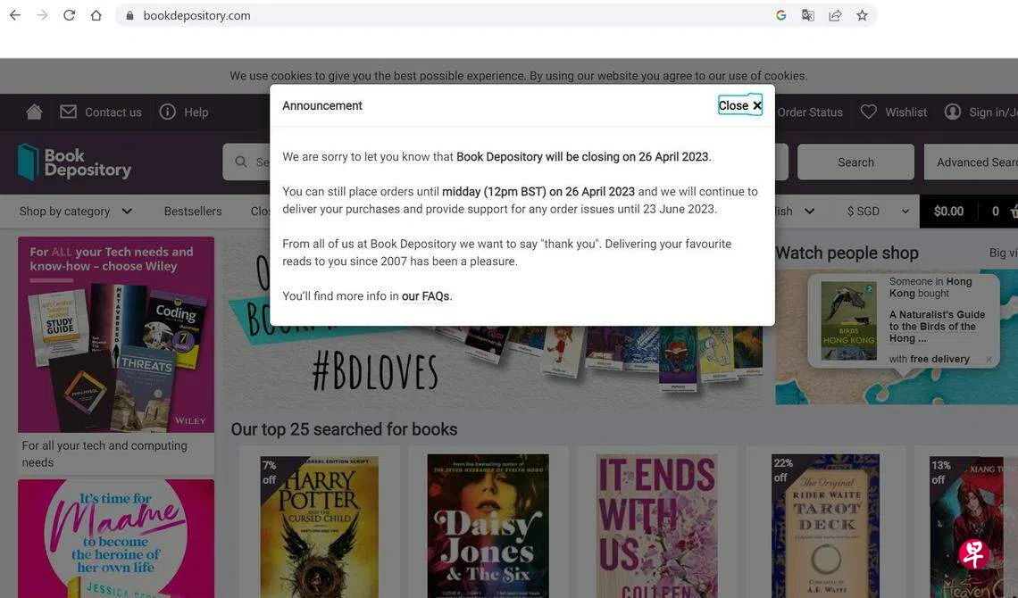 电商巨头亚马逊宣布旗下网络书店Book Depository将于2023年4月26日结束营业。