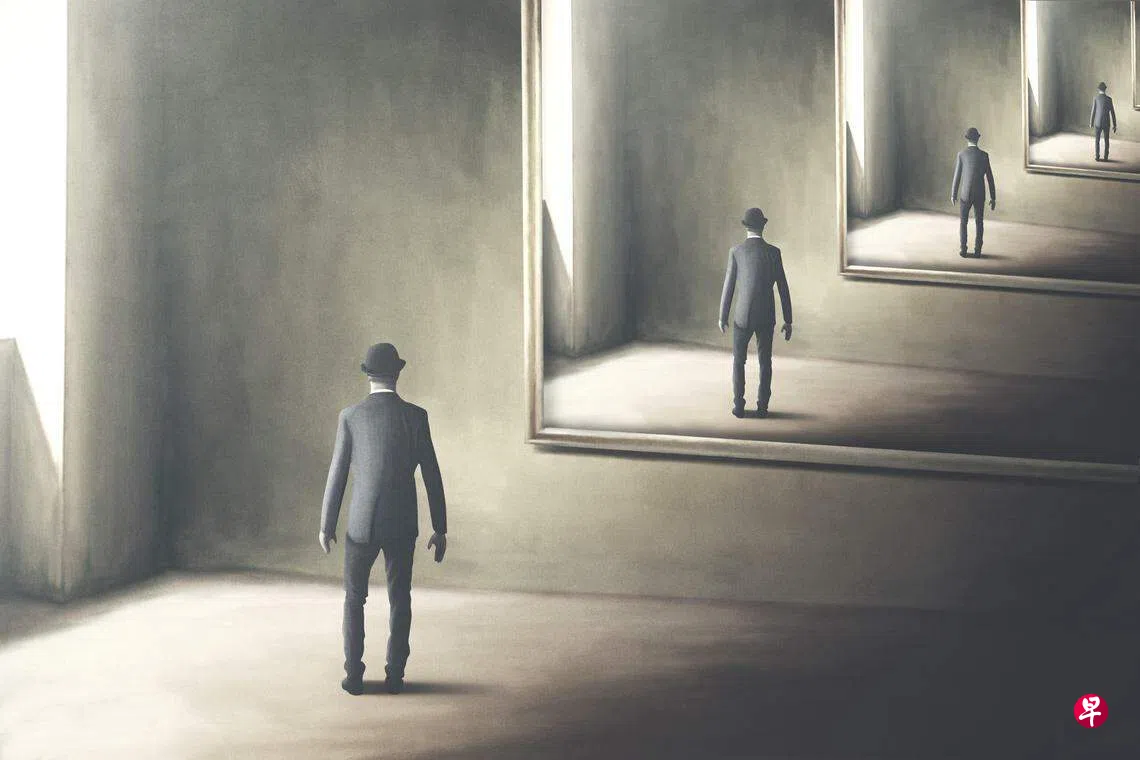 说是镜子里的那个人,而不说是镜子里的“我”,是因为当我茫然抬头时,看见镜子里倒映出来的,是一副不一样的脸孔。