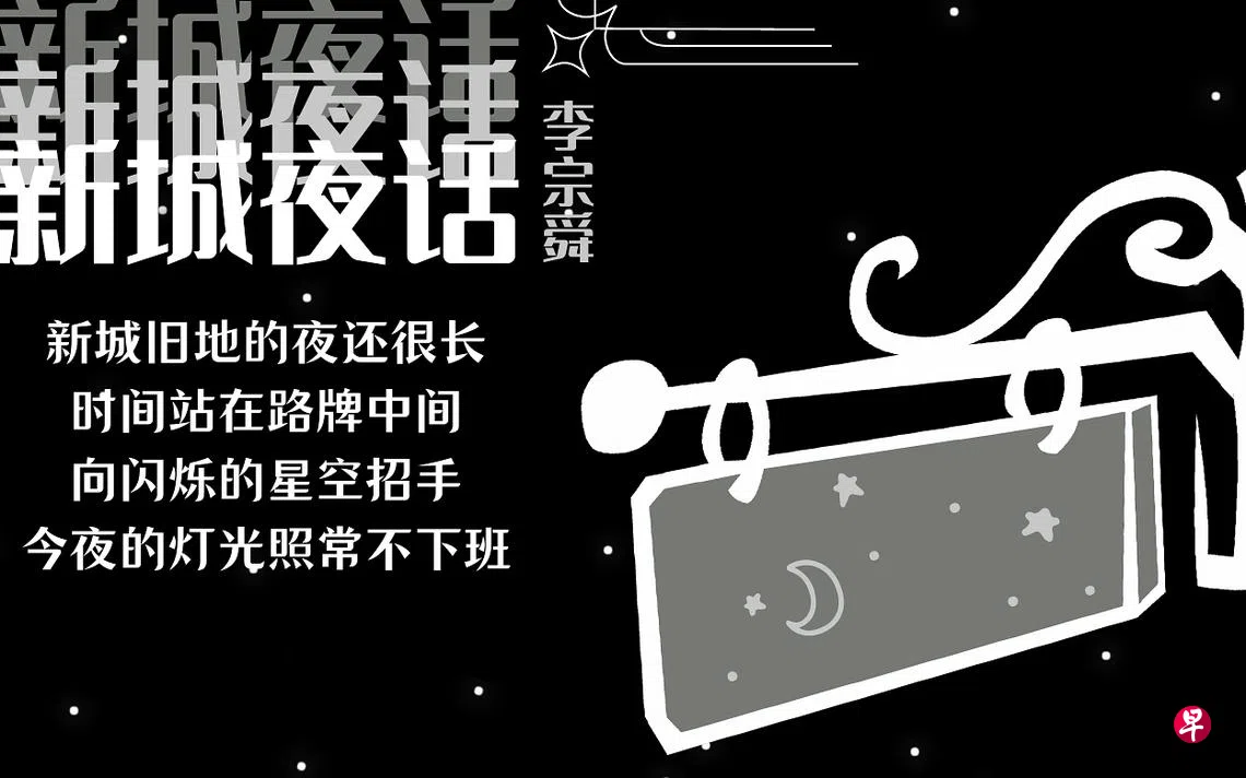 新城旧地的夜还很长 时间站在路牌中间 向闪烁的星空招手 今夜的灯光照常不下班