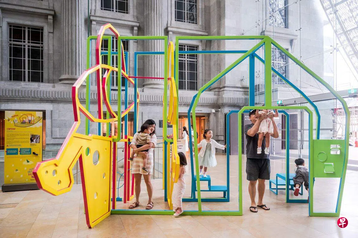 这是新加坡国家美术馆2023年度儿童双年展展出的装置,双年展进入第四届,从即日起,举行至2024年3月31日,通过国内外艺术家的11件装置,四大核心价值观(关心、协作、想象和尊重),让大人小孩得以想象未来是更美好的地方。