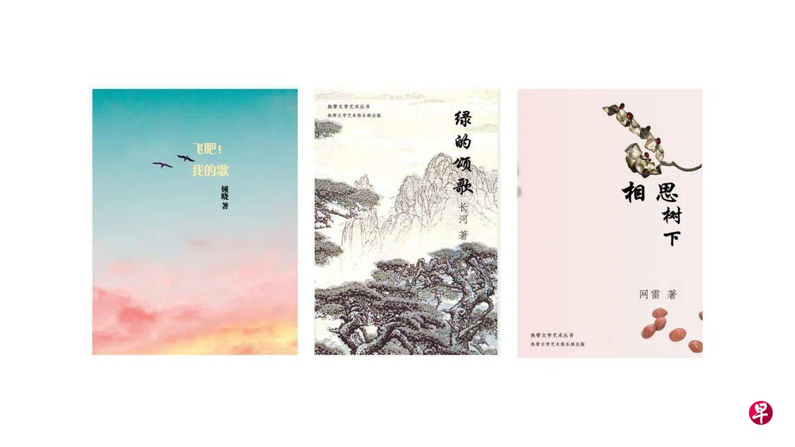 四本新书为:锺晓《飞吧!我的歌》、长河《绿的颂歌》、陈美华《人生三部曲》与网雷《相思树下》。
