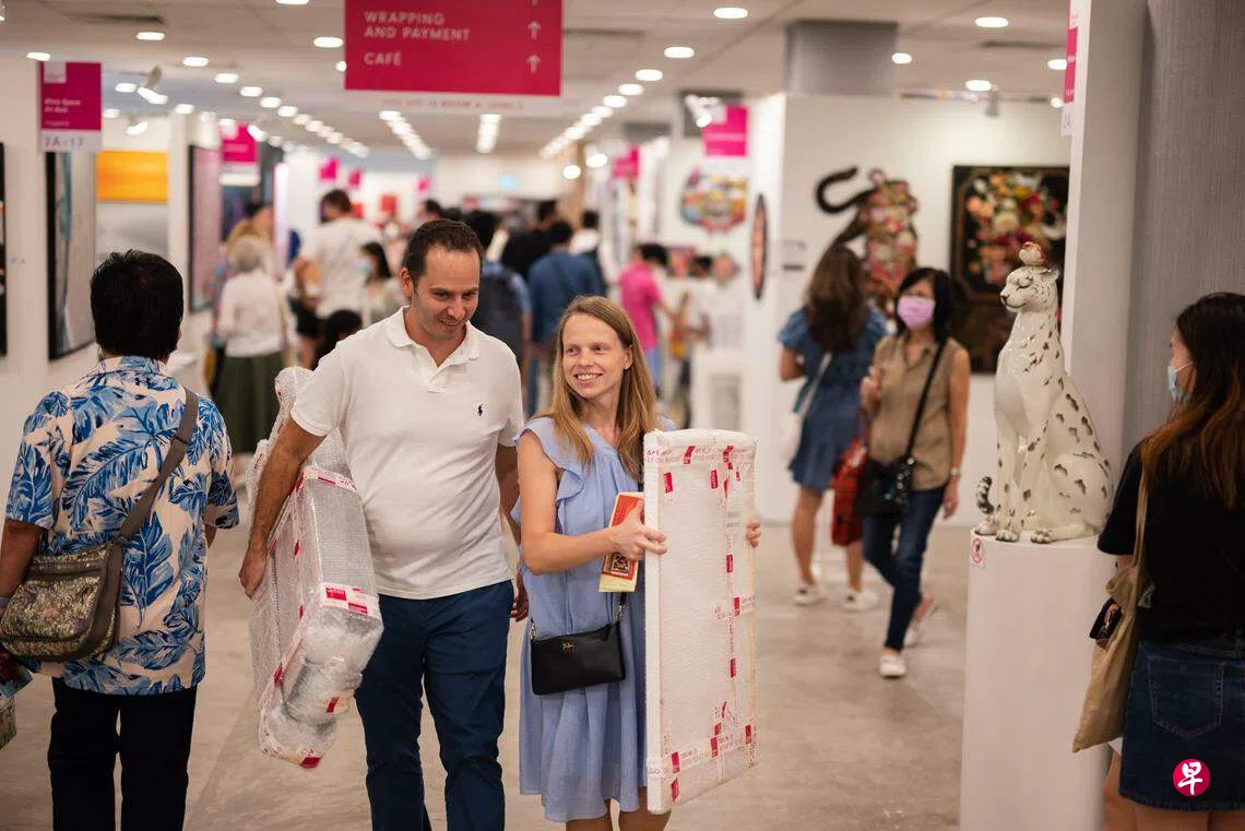 艺博会艺术品价格顶限为1万5000元,75%售价在7500元以下,也有一些少过1000元,以吸引艺术爱好者购藏。艺博会自2010年起举办,2022年在冠病疫情后复办,吸引超过1万5000人次访客,购买2000件总值450万元艺术品。