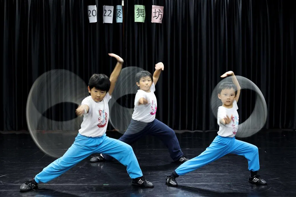 走访新加坡传统艺术中心,是一个星期六下午,没进排练场,先听到一阵阵孩子嬉笑声,推门一看,原来是十几个小朋友正跟老师练“童子功”。
