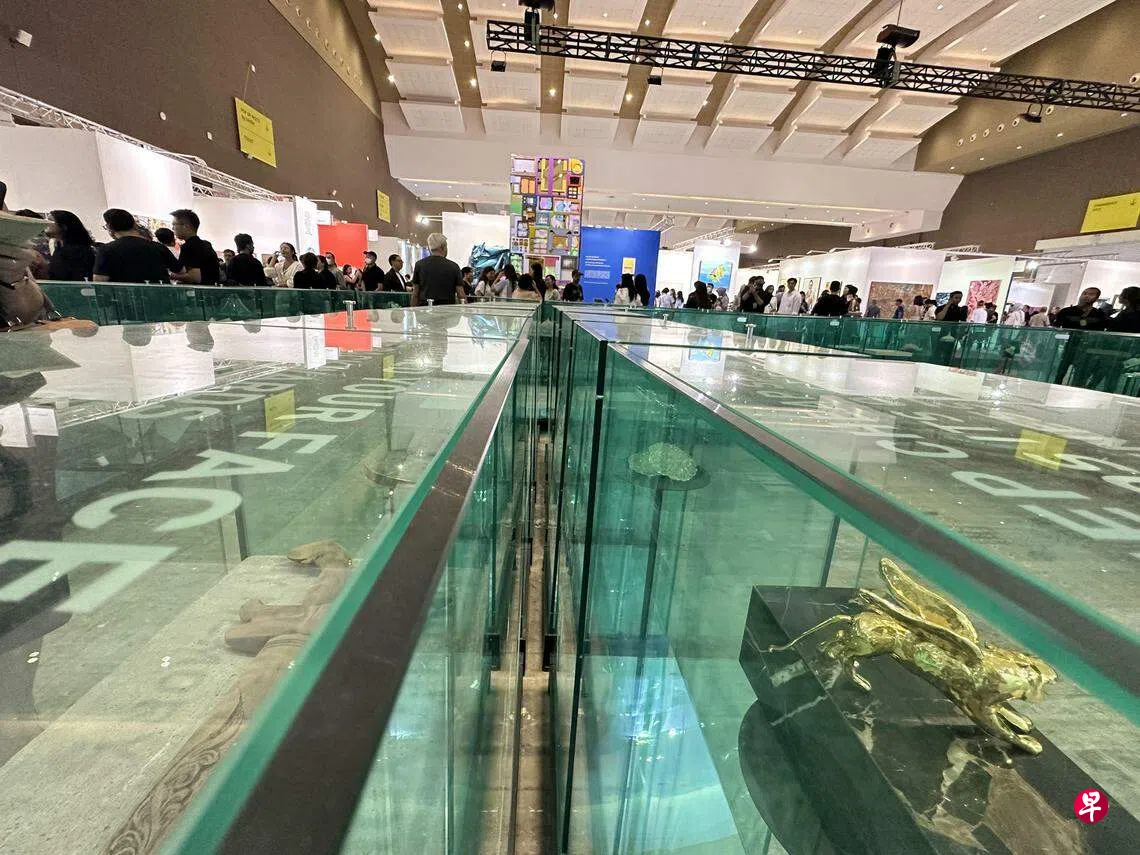 2023年在焦点展区看到的艺术装置共有九个,比往年更多,素质更高。印尼艺术家Asmoadji的新作《活下来,看周围》(代理画廊Baik Art)使用各种现成品,以贫民窟搭建成摩天大楼,具反讽意味。Asmoadji通过翻译受访时说,作品灵感来自他所住的城市郊区,虽看似一团乱,仍挣扎求存,是城市与印尼文化一部分,不该被忽略。