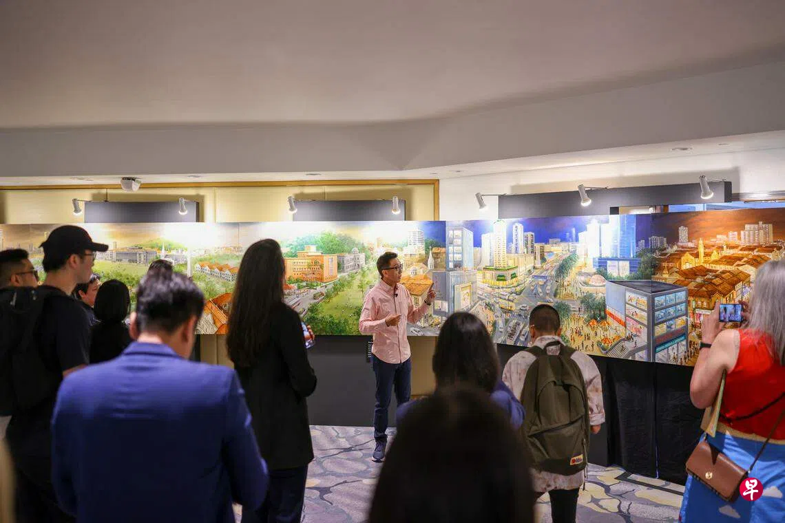 以街头巷尾的壁画闻名的画家叶耀宗(54岁),费时一年半完成他最大的一幅亚克力帆布画,总长60米的长画《心绘新加坡》(I Paint My Singapore)。