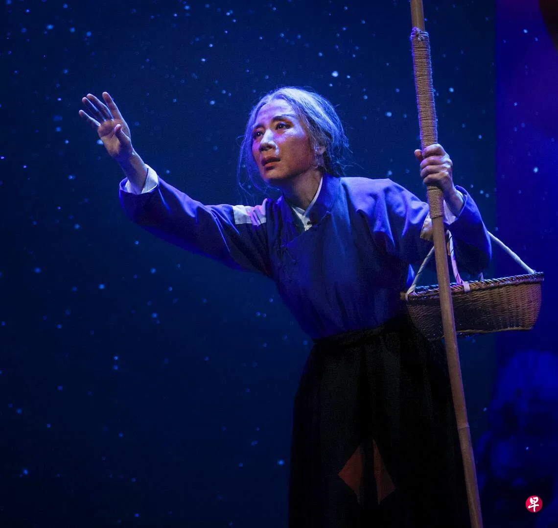 主演李丰的表现依旧亮眼,而且渐入佳境。《捐好了门槛一条》这一场她着重体现人物如释重负的欢畅,而这里的喜悦与之后被逐对比鲜明,突出人物的可悲处境。最后“问天”一场,回忆身世,唱出满腔愤懑和无奈。这场篇幅相当长的独角戏,布景、表演和唱腔相互映衬,让人不由为祥林嫂的不幸而动容。
