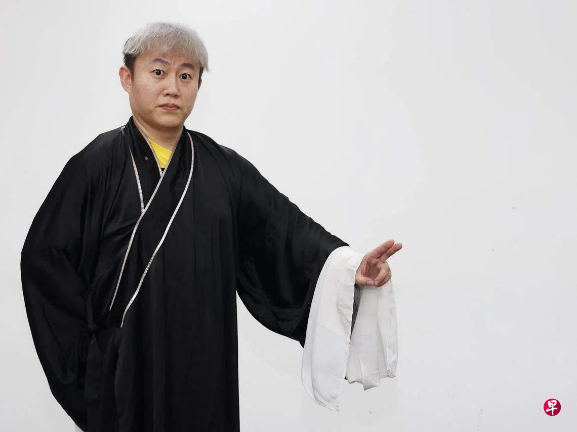 本职是中学教师的王俊明,对粤剧产生兴趣,始于小时候看街戏。“我35岁才开始学戏,算很迟,烦恼是基本功很难上手,筋骨比较硬,尽量能做多少就做多少。因为过去几年疫情耽搁,我真正认真学习也才三年,我上过不同老师的课,有的老师要求高,有的老师看我们不是专业演员,就降低要求,但我心中对自己有要求,有标准。之前刚学戏时,一周七天都学戏,很是疯狂,现在年纪渐长,则减少了些,维持在一周两三天的学戏频率。”