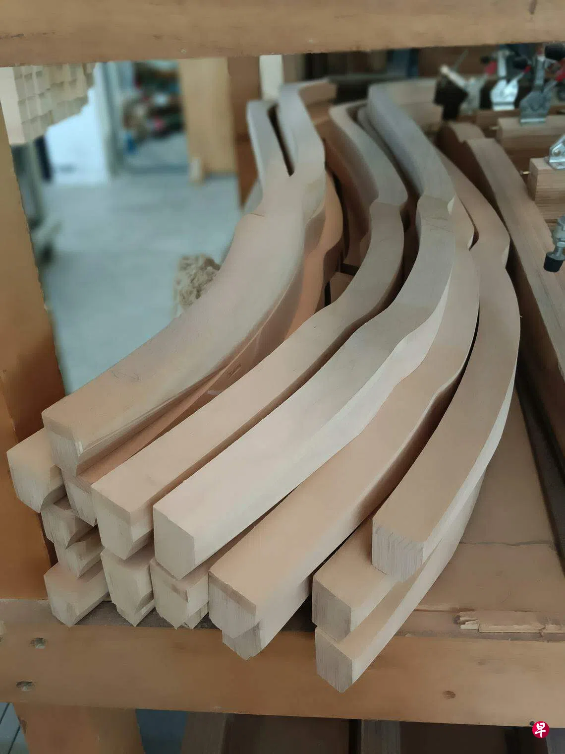 木头依据各自的条件,被裁切成钢琴零部件、有长柱的背架枋、细木条的肋木、扁长板的实木音板、弯曲型的中高音弦码,还有各种各样形状异样的击弦机零部件。