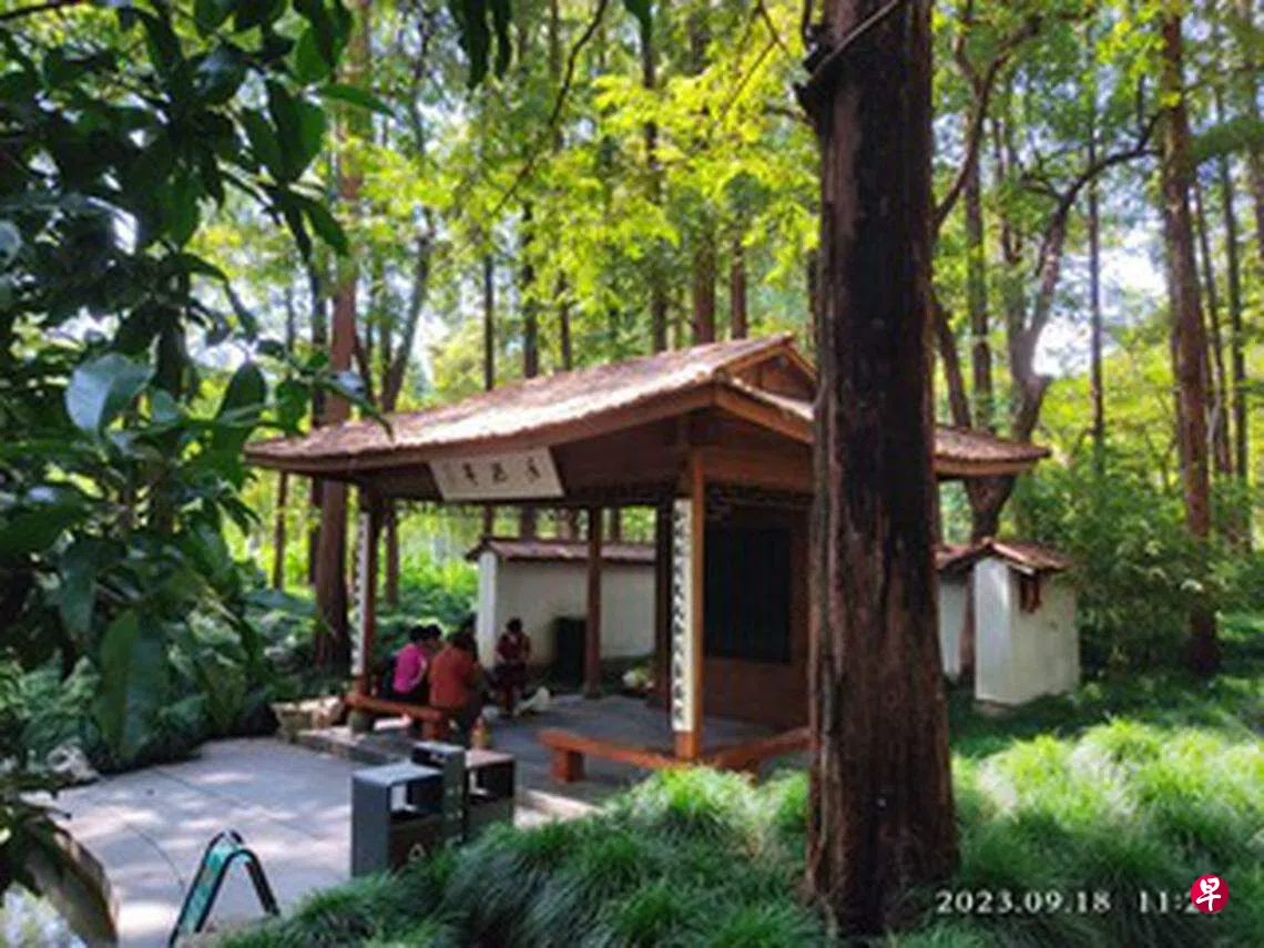亭子小巧古朴,四根原木柱子,围着厚板长凳,中心位置立一片木质诗碑,镌刻着易安的《声声慢》:寻寻觅觅,冷冷清清,凄凄惨惨戚戚……我在心里默诵,一种沉浸式的感应传遍全身。