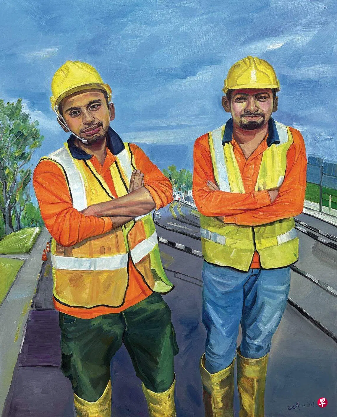 孟志华考获河北经贸大学艺术学院学士、师范大学美术与设计学院艺术硕士。来新后,她随处见到客工,在空中刷墙,在修马路,在组屋楼下吃饭、休息。一次,她看到工人在家外刷墙,阳光强烈,汗流浃背,但还面带微笑,打招呼,帮忙关上门窗,她顺手拍下照片,心中萌生想画客工的冲动。