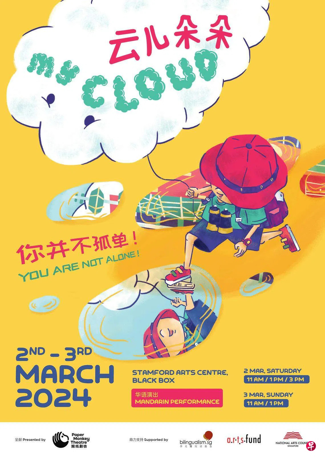 猴纸剧坊开年偶戏《云儿朵朵》,描述一个年幼的孩子,手持一朵用绳子连接的云,鼓起了勇气,踏上勇敢和自我发现的旅程。