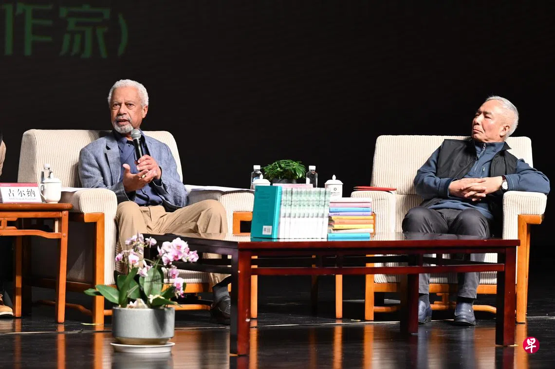 古尔纳的开场演讲从郑和下西洋、东非与海洋流动交流史讲起。他说:“港口离我家只有几米之遥,我从很小的时候就亲眼目睹了这些人的到来,是他们带来的故事伴我长大。伴我长大的,还有我们中的英国人和德国人的故事:他们如何在我们的土地上挑起战争,兵戎相见,德国人的凶残如何成为神话,后者后来成了我两部小说的一个主题。从小到大,我都对关于殖民存在和殖民活动的历史叙述感到不满,它简化了我们复杂的文化。这种不满是促使我写作的动力之一。我在18岁那年离开了当时正处于动荡中的祖国,离别的经历,以及渴望重拾对被我遗弃之地的认识和理解,则是另一重动力。”