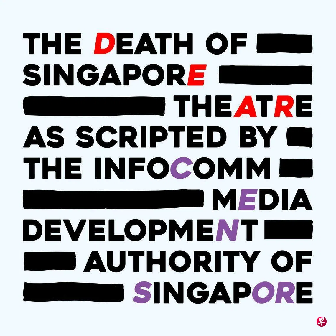 本地作家、剧作家亚非言创作的《新加坡资讯通信媒体发展局策划:新加坡剧场之死》,追溯了殖民时期至今的新加坡戏剧监管史。剧作简介形容,这是一部关于道德恐慌、文化战争、官僚语言和政治精英如何塑造新加坡审查格局的编年史。