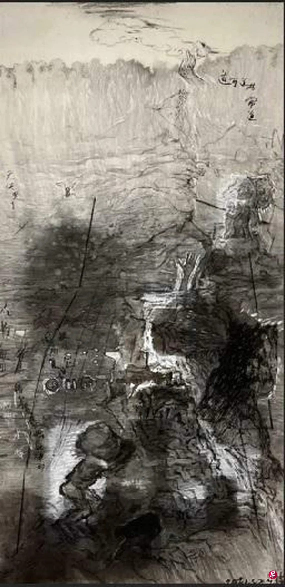 每一幅画仿佛是通往陈心懋潜意识的窗口——疫情期间游园梦醒,江山不再如画,焦虑不安。新作结合中国墨汁和丙烯,笔触更加草草不工,构图更加动态,对符号运用更加入微、近代,融合中西,宣泄情感,淋漓尽致。