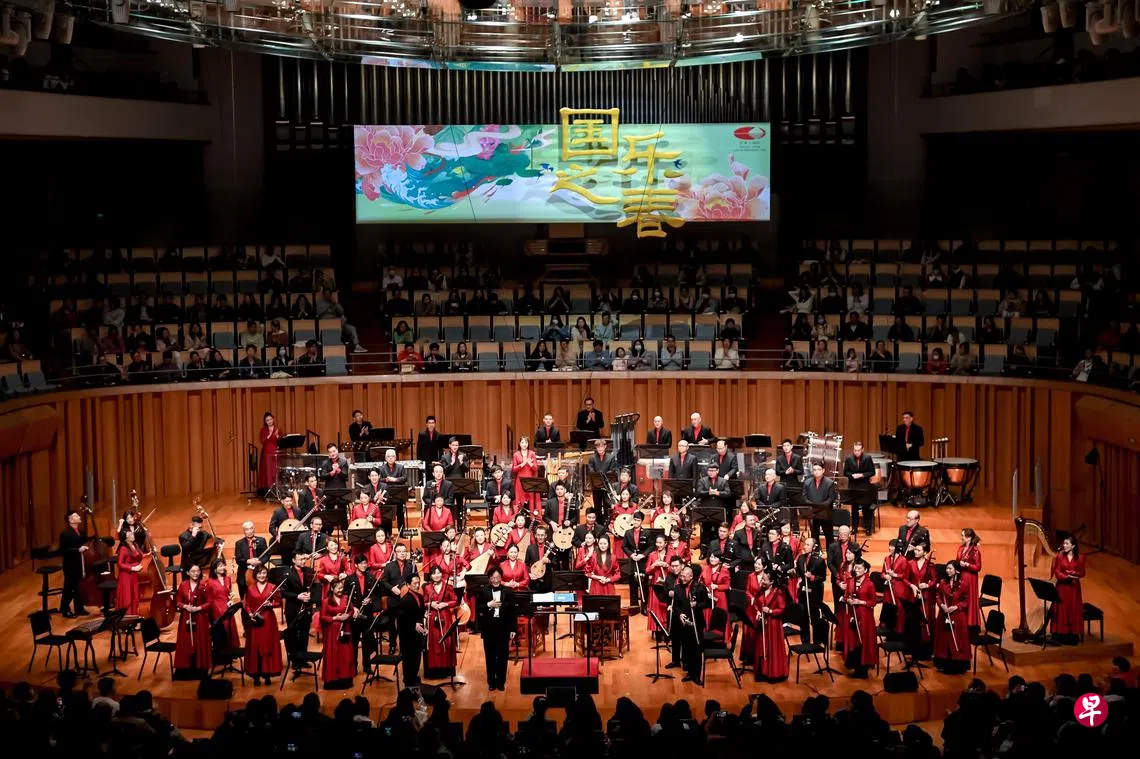 这场名为“乐融狮城”的音乐会4月5日在国家大剧院音乐厅上演,由荣誉指挥叶聪策划执棒。音乐会演奏了《挂毯:时光飞舞》和《海上第一人——郑和》两首具有南洋风格的作品,以及胡琴协奏曲《火祭》与琵琶协奏曲《天梯》。音乐会门票在演出前售罄,当晚新中两国华乐界的高朋满座,演出获得全场观众经久不息的喝彩。