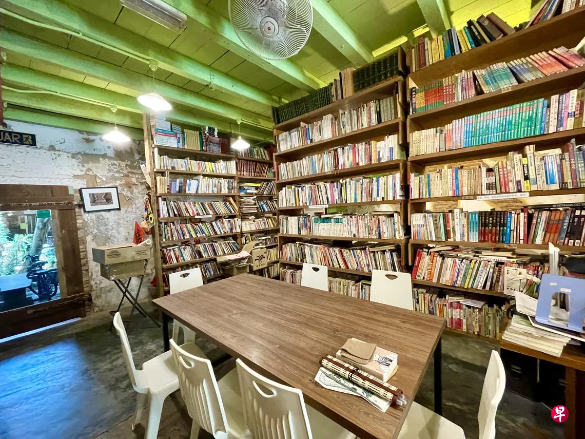 坐落在鸡场街外约1公里的大屋子,是马六甲有名的二手书店,也是独此一家,创立于2013年,书店主体是一座两层老建筑,据说有百年历史。老建筑一楼是书店前台、阅读休闲区,可以边阅读边品尝这边的茶点咖啡;老建筑后面是一间有书、美术作品,还有天井的平房;右边则是由石椅石桌、石头小径、花草、竹林围成的一块小小庭院。