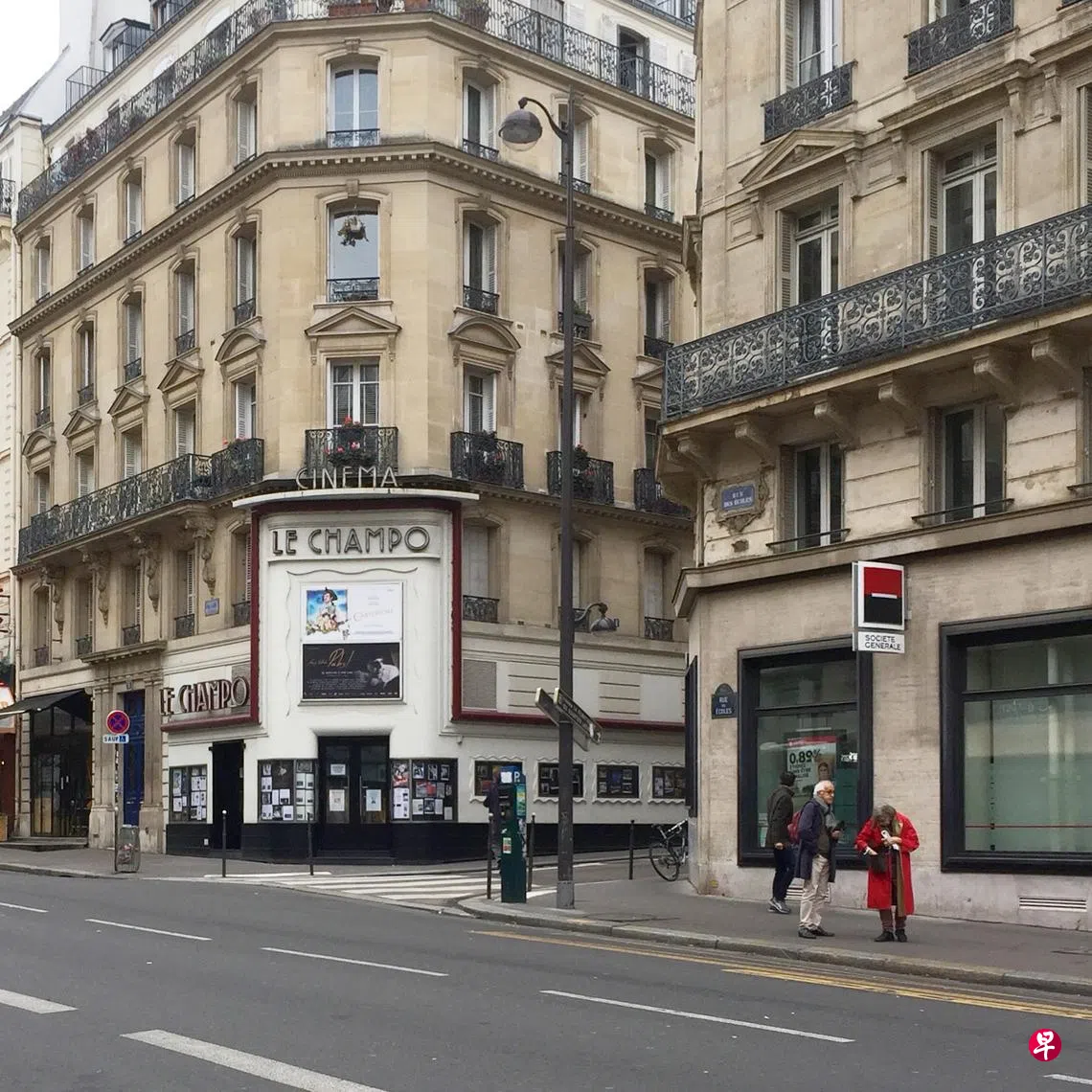 喝过了茶,歇过了脚,眼睛触摸过了玻璃柜内的金棕榈奖杯,迈克带我们在他活动的地头散步,也就是所谓拉丁区。先走一遍他在专栏写过的桑普亮小巷,他的观影地图上的戏院街。其中一家戏院外墙贴有《虎斑少女》海报,我和假牙兴之所至,让迈克给我们跟女主角一起恶形恶状合照留影。