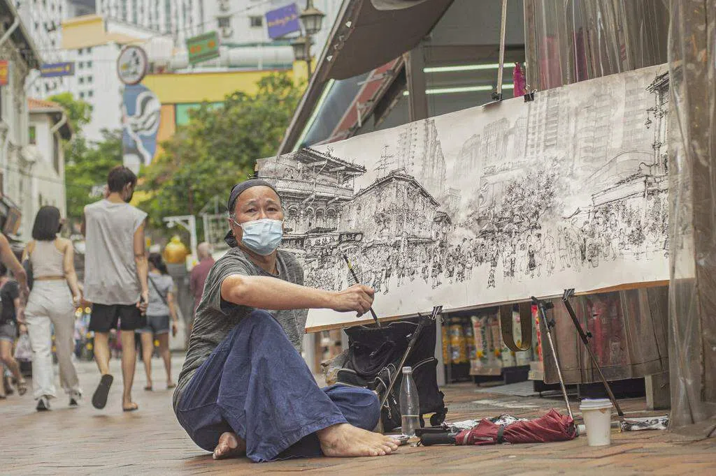 新加坡水墨画家邓汝能(65岁)20年前开始数码摄影,每次出游可拍摄5000多张到8万张照片,热情一度超过绘画,用坏了三个专业相机。每台相机拍过一两百万张照片,家里硬盘库存都没时间回看。他首次举办摄影个展“浮生记”,展出10年前在北京、上海弄堂街区、柬埔寨吴哥窟、印度恒河、泰国清莱、越南高原和新加坡城市共60件黑白街拍作品。
