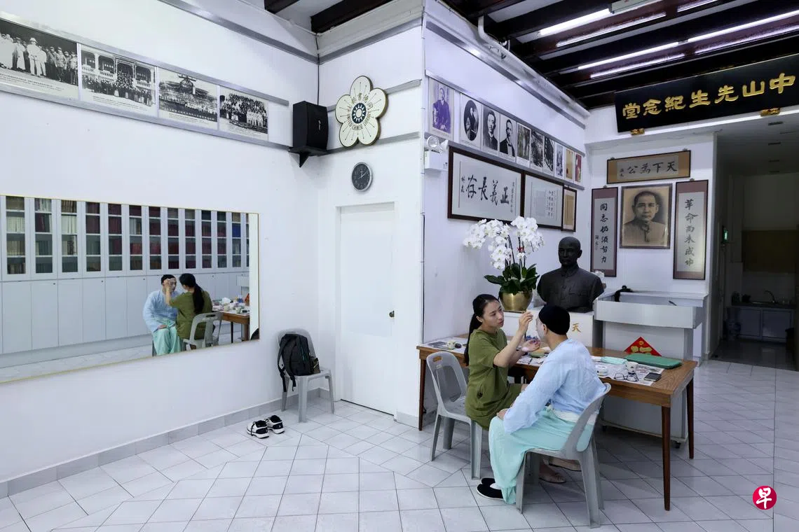 在“中华民国国父”孙中山遗像下,看京剧演员上妆和排练,有一种时空错置的超现实感——