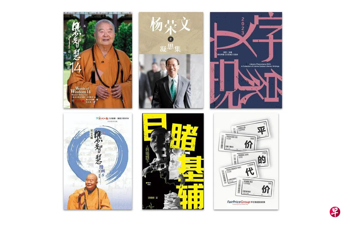 这六本书分别是前艺人沈倾掞讲述俄乌战争下基辅生活的《目睹基辅之兵临城下》,前部长杨荣文的思想回忆录续篇《凝思集2》,讲述新加坡最大超市集团平价集团故事的《平价的代价》,《联合早报》副刊《文艺城》年度文选《文字现象2023》,还有《新明日报》的《星云大师点智慧14》及《点智慧漫画8》。