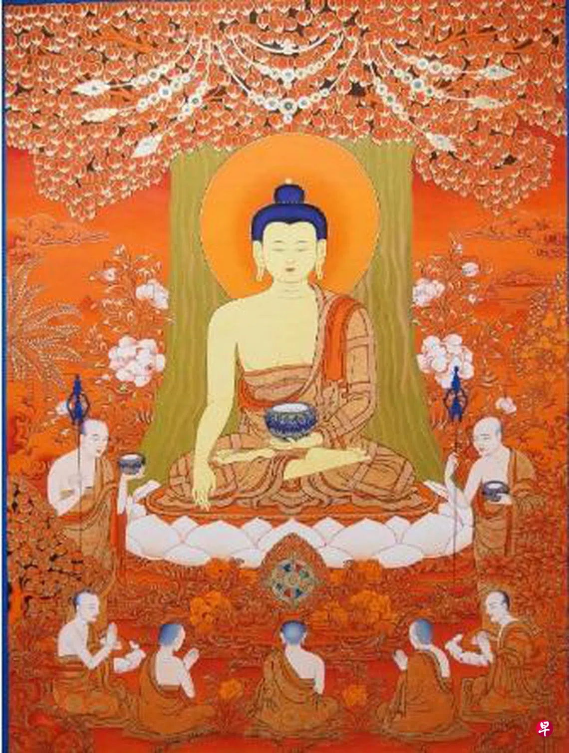看点:唐卡是中国藏民族文化中独具特色的绘画艺术,被公认为是世上绘制工序最繁复的工笔画。它采用金、银、珍珠、玛瑙、红珊瑚、绿松石、青金石等天然矿物宝石研磨成粉,通过传统配色工艺调备颜料,采用高超的着色渲染技艺,创作出神圣的精神氛围,使之历经几个世纪的洗礼,仍保持色彩璀璨。