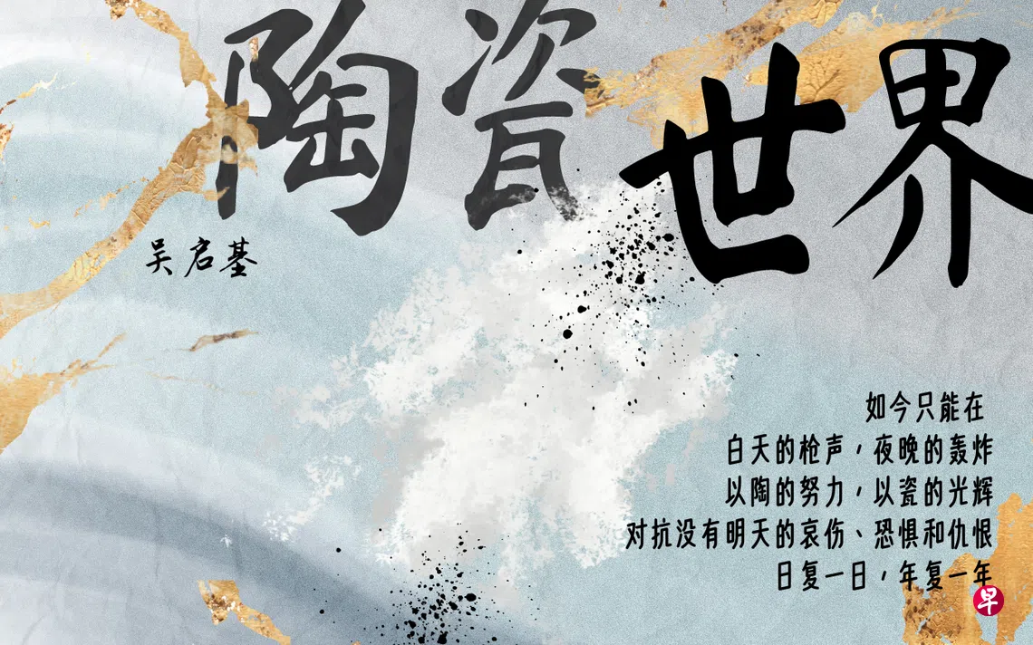 吴启基写《陶瓷世界》,视野很大,把眼下战乱纷纭,人命涂炭的现实一并囊括进来;“陶瓷”不仅仅是器物,而是转喻为人文态度——以文明对抗野蛮。