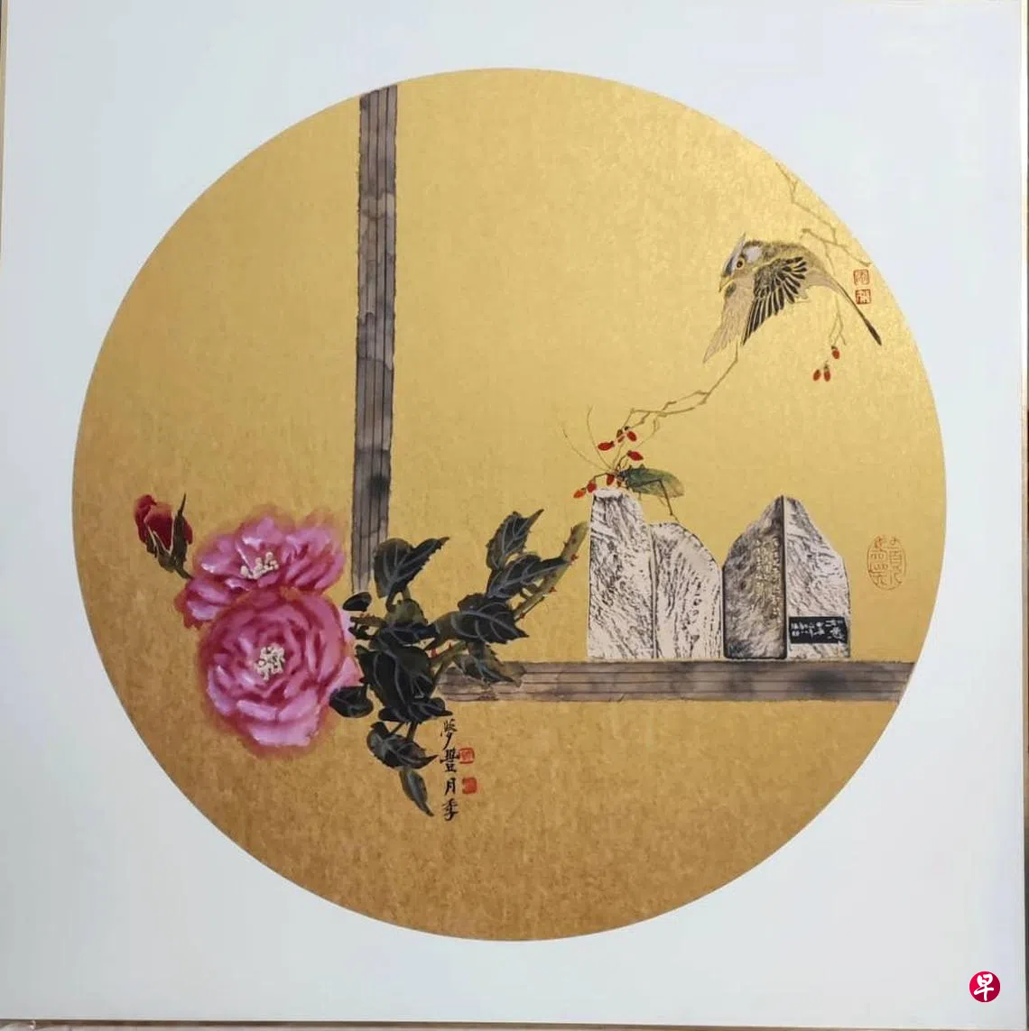 比如:许梦丰画月季,张财随后以薄雁皮宣勾画拼贴成窗沿效果,再贴上几个篆刻印边,意为窗内小石,石上画一纺织娘。李福茂再添飞鸟及小红果子,提升画面意趣。另一张合作画是胡长进写《道德经》“上善若水,水善利万物而不争。夫唯不争,故无尤。天下莫能与之争。”陈振文接着画小花与鱼群,郑木彰画上树干,让小花长在不与人争的环境。水波荡漾,鱼群仿佛穿越而来。