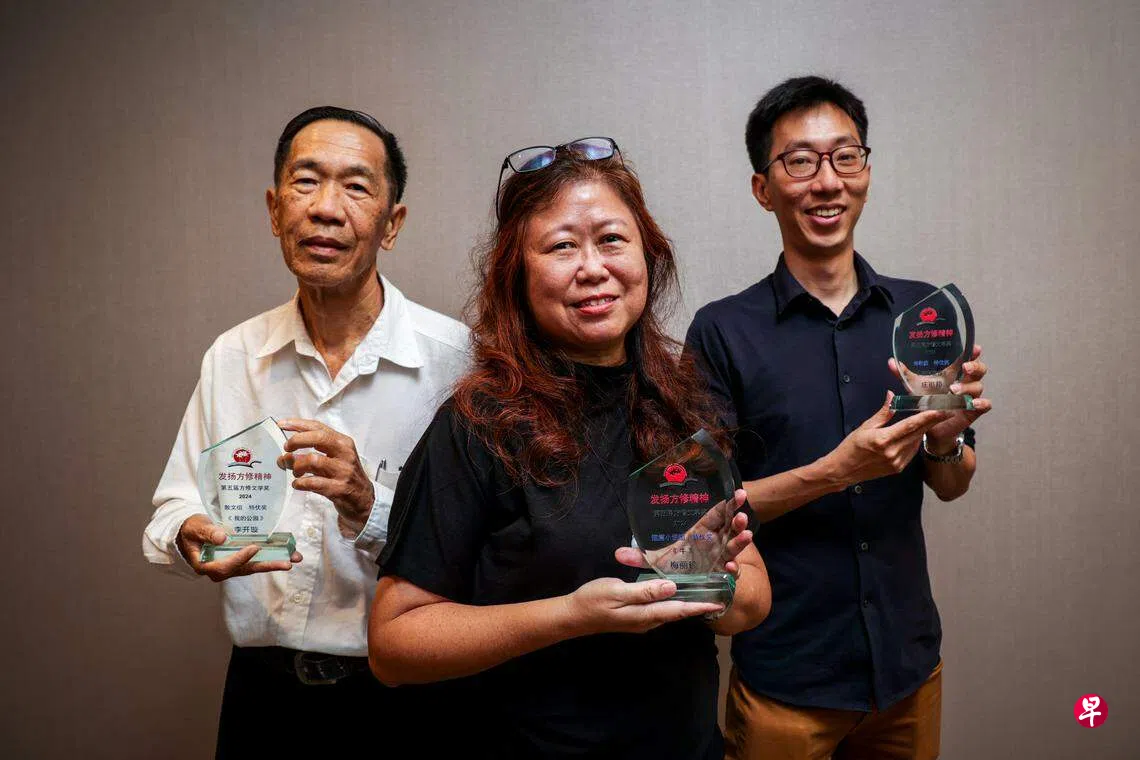 57岁的新加坡作者梅丽珍(卡路)凭作品《牛》赢得小说组特优奖,68岁的马来西亚资深写作人李开璇则以《我的公园》得到散文组特优奖。