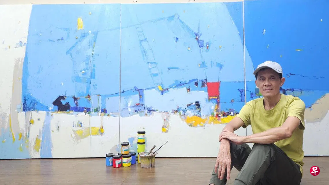 看点:本地画家吕福泉(58岁)举办第四次个展“漫漫南洋风”,延续去年探索,展出14幅胶彩新作,包括1.5米高、3.6米长的三联画《漫漫蓝之六》。配合展览出版的画册收录了画家近两年的32件画作。