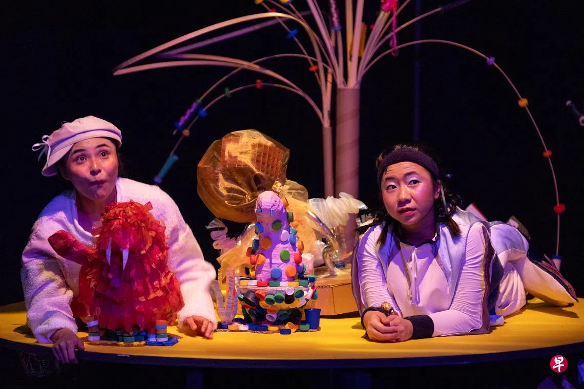 很显然,主创希望在孩子们的心中种下“保护海洋”的种子。观众席间散落的塑料瓶,飘飞的塑料袋,在剧目未开始时就揭开了童话的一角,隐约露出其间丑陋的现实。剧中有许多细节十分巧妙地点明了人类活动对海洋生物的危害。豚豚的残疾是因为撞上了船只;豚豚与鲸鲸互相展示着身上被船只划破的伤痕;豚豚的父母被捕鲸船抓走;豚豚的家被泄漏的石油覆盖……只字未提“人类”,却无一处不在展示人类活动对海洋的影响。主创没有在台词中进行说教,只是运用细节来让观众共情和理解,从而让孩子们自发地去思考:我们要怎么减轻对这些动物的伤害?