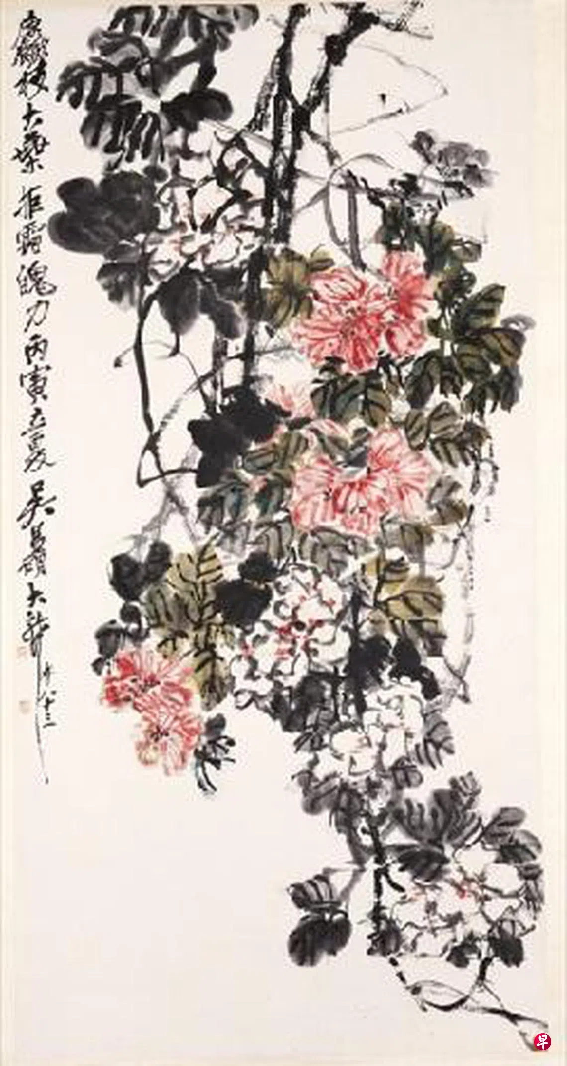 吴昌硕是中国近现代艺术发展史上承前启后的一代宗师,勇于创新的海上画派巨擘,以“诗、书、画、印”四艺卓绝、相互辉映的独特成就蜚声海内外,被艺界公推为西泠印社首任社长。