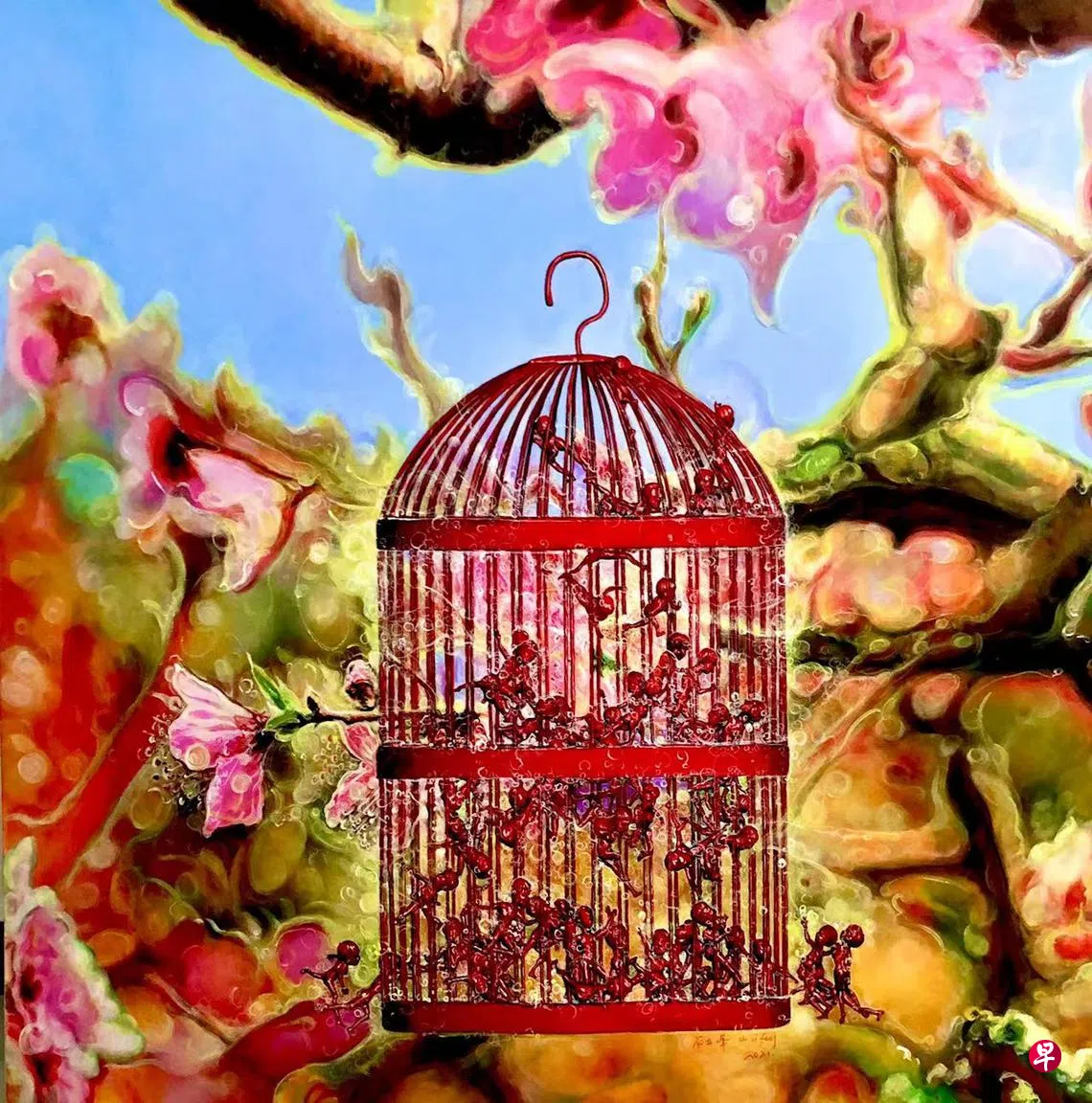 南蛮艺苑举办中国当代艺术家石立峰(56岁)油画个展“乌托邦”,展出石立峰多个系列共近30幅作品。其“小红人”具辨识度,不仅展现中国社会的集体记忆与历史印记,还深入探讨个体在现代社会中的生存状态与精神困境,融合象征主义与现实主义,以鲜明的视觉语言呈现出对权力、控制、自由与梦想的多重思考。