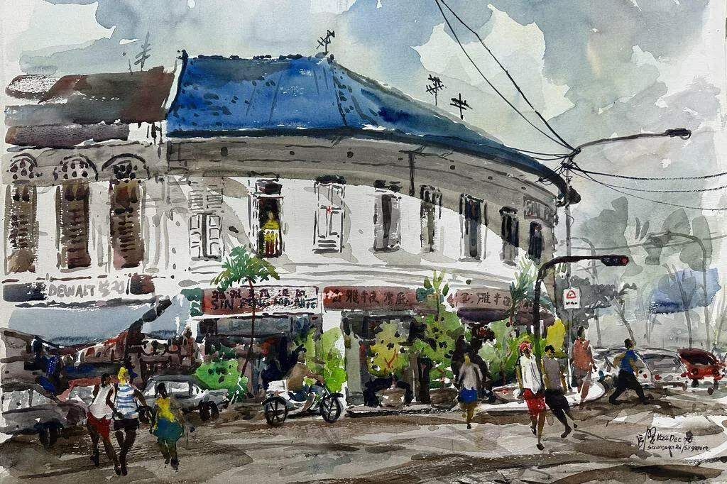 李运启水彩个展 展市景食肆风貌