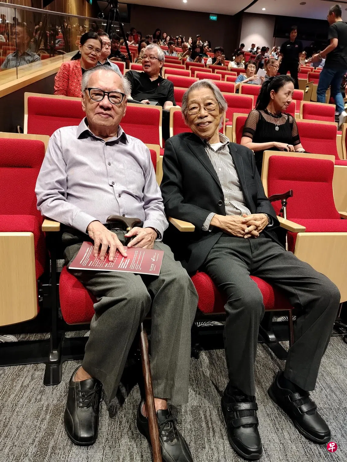 最后一次和林老见面,是刚刚不久的9月21日。他接受我的邀请到新加坡华族文化中心观看伊菲参与制作的《再见·歌中情》。两位银发老人并肩而坐,欣赏久违的华语音乐剧。林老看戏很认真,演出结束后他告诉我,“要呈献这全套华语音乐剧太难得了”,对这场主要由非专业人士演出的音乐剧给了很高的评价。那天,治国为我们留了合影,当时我还赞许林老气色不错,进出只用手杖,不像我,出门在外还得依赖轮椅。真没想到,那次留影竟是我们的最后合影!
