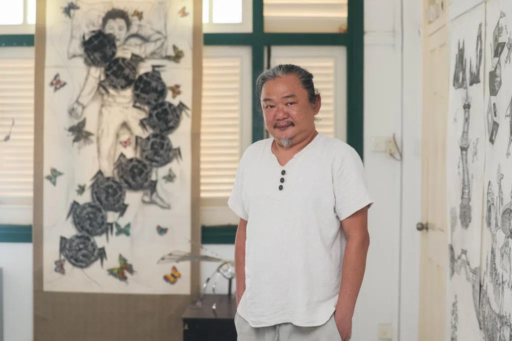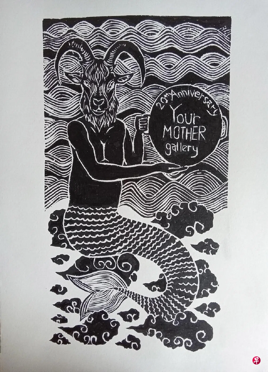新加坡艺术家邢万和在租来的黑白屋客厅开设的“你妈画廊”(http://yourmothergallery.com/)已迈入20年,特别创作版画《背黑锅》 庆祝。画上背黑锅的替罪羊形象象征这个地下艺术空间的使命——为那些可能无法被主流机构接受的艺术家提供避难所,为边缘化的声音和非传统的艺术表达提供一个平台。至今画廊已为国内外艺术家筹办超过百场展览。邢万和说:“在‘你妈画廊’,你可以做任何想做的艺术,只是不要在我邻居墙上打洞!”