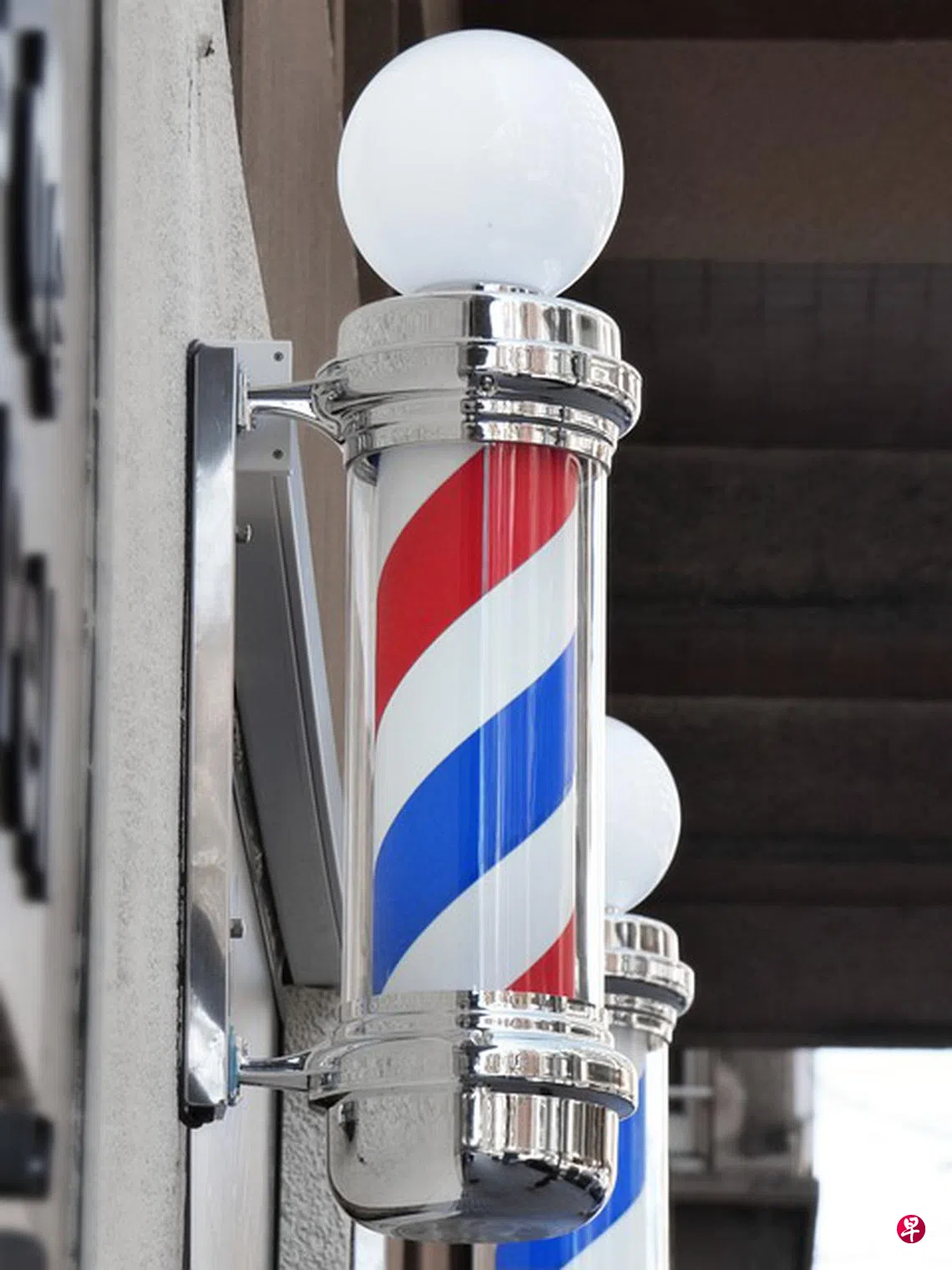 那个年代的理发店,门边上方总有一管转动红白蓝色的灯柱。转着转着,似乎青春就留下一些红蓝。转着转着,似乎叛逆就削走一些空白。