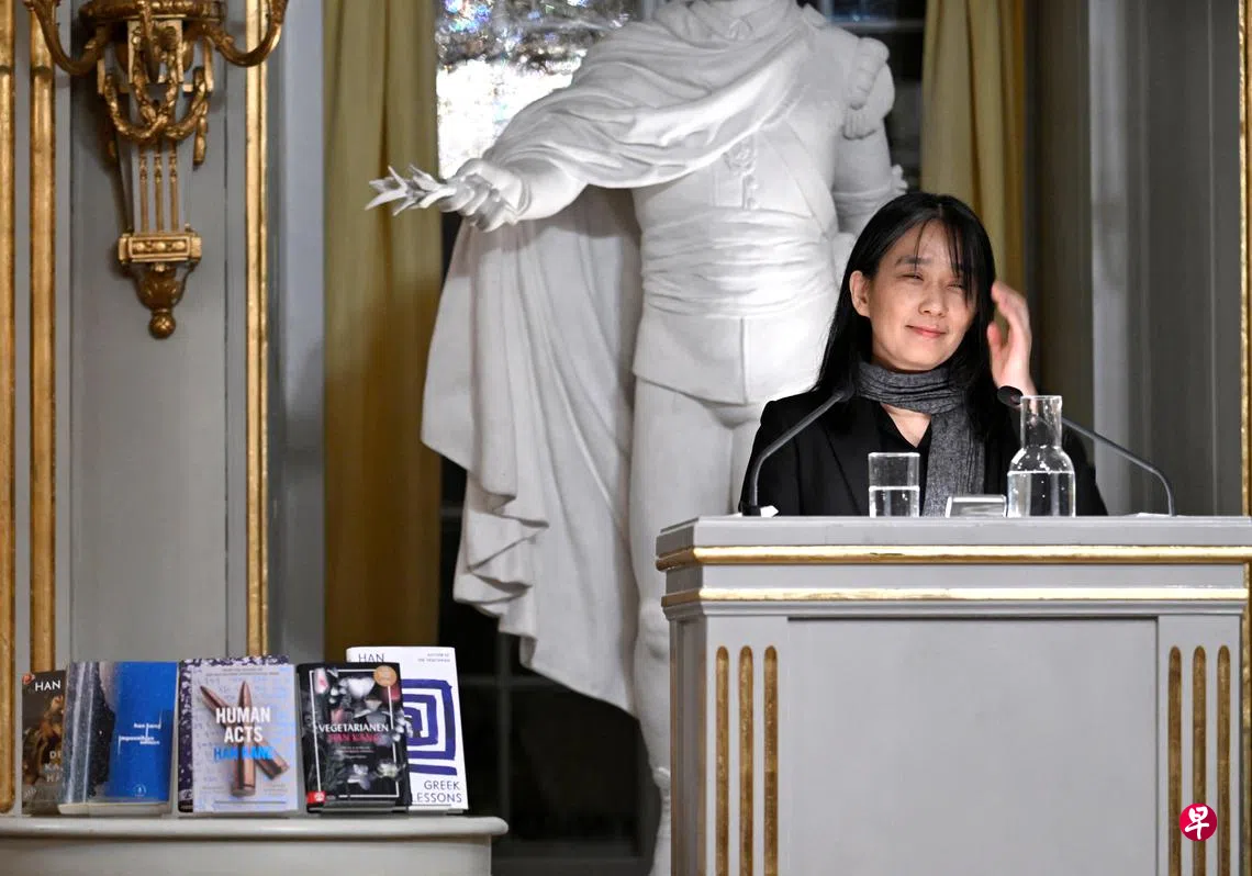 新科诺贝尔文学奖得主韩江于瑞典时间12月7日在斯德哥尔摩瑞典学院演讲,题目为《光与线》,回顾个人的写作历程,以及她对人性之残酷、善良之矛盾的思考。
