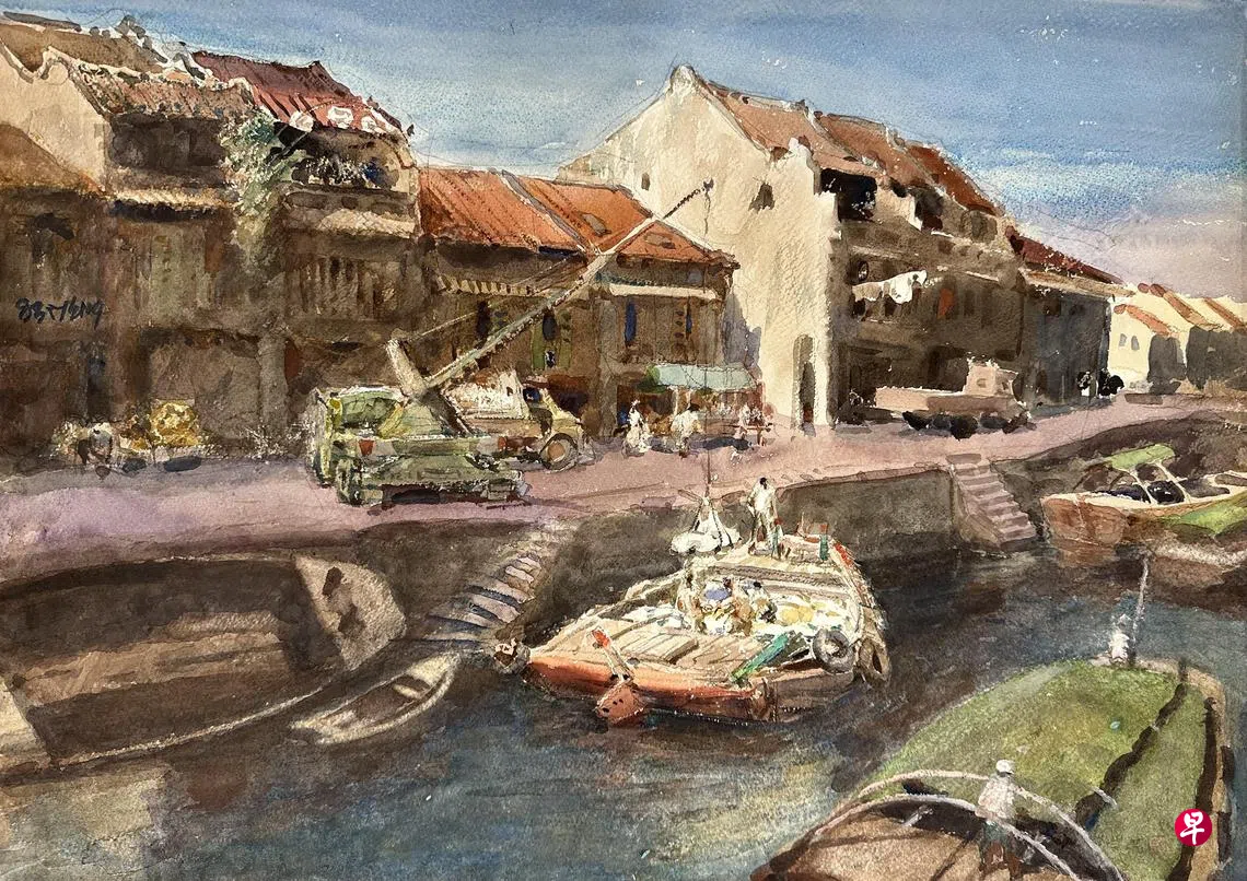 海卉艺苑举办“萧学民的艺术——八十年代的新加坡河水彩写生作品展”,展出2024年新加坡文化奖得主、画家萧学民共30幅作品。萧学民(83岁)很少画新加坡河题材,这批早期在新加坡河畔的水彩写生作品比较少见。这是画家太太几个月前在家里找到的旧作,唤起太太当年常陪伴他河畔写生的回忆。