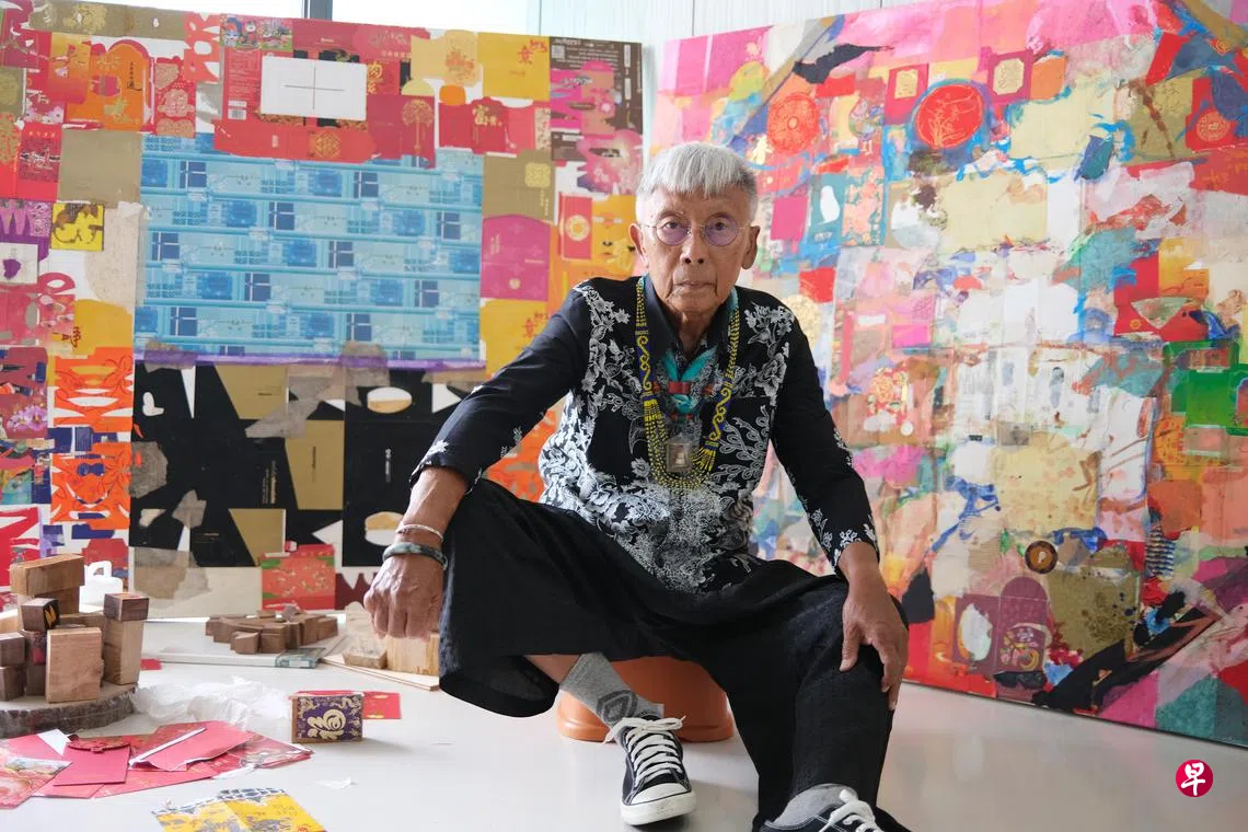 新加坡文化奖得主、艺术家吴珉权(88岁)与太太最近搬家时,挖出过去60年来收集的旧红包封,数量过千,设计琳琅满目,色彩鲜艳亮丽,于是将之融入他最擅长的拼贴混合媒介创作中。吴珉权受访时说:“使用这些红包封,一方面是为了环保,另一方面是化腐朽为神奇,能将新作在华人重视的大节日——农历新年展出,特有意义。”