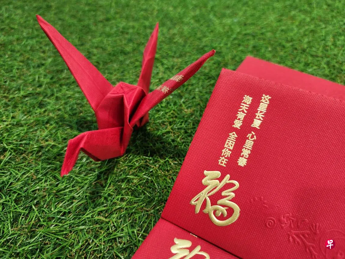 红包封套有红色与金色两种款式,同时附有QR码,可按照步骤将它折成纸鹤。
