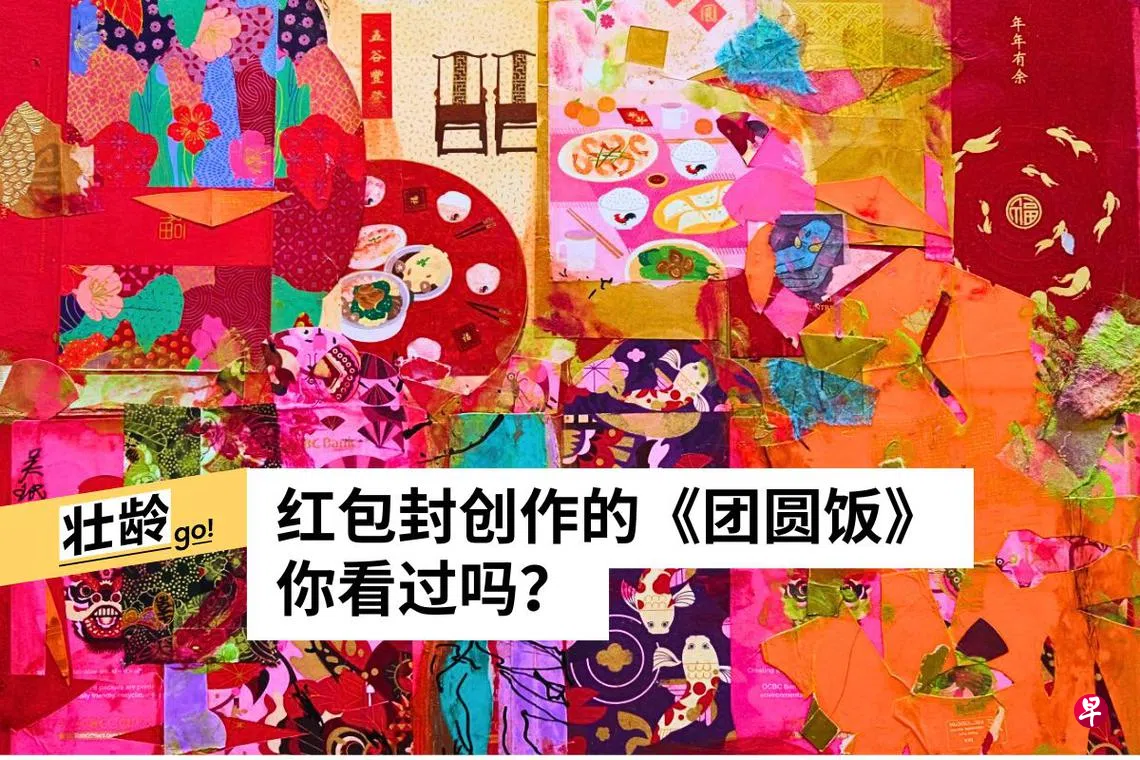 他最近搬家时,和太太挖出过去60年来收集的旧红包封,数量过千,设计琳琅满目,色彩鲜艳亮丽。他于是将之融入最擅长的拼贴混合媒介创作中,在家具店办展览,展出红包封拼贴画贺新年。
