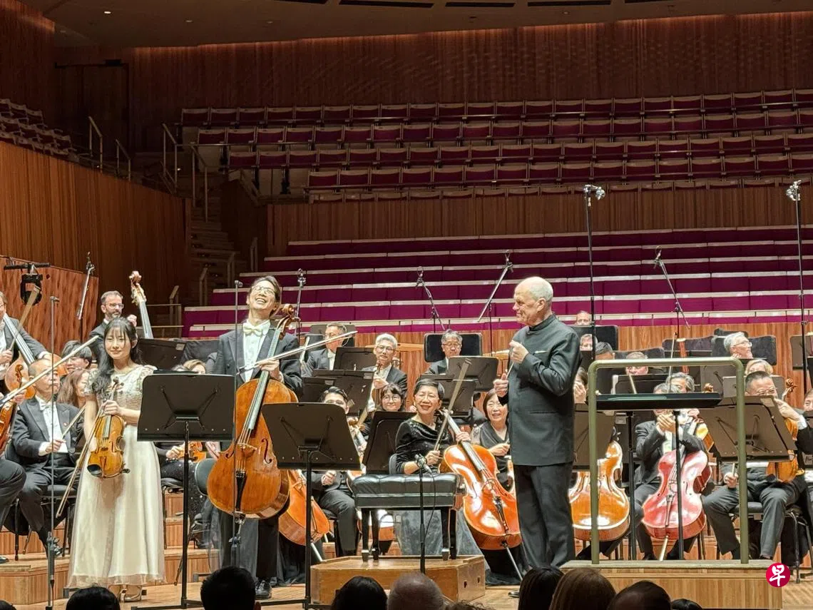 随后,当红国际乐坛的本地小提琴家蔡珂宜和乐团大提琴首席吴沛轩以勃拉姆斯的《小提琴与大提琴双协奏曲》演绎了一场感人至深的音乐对话。吴沛轩在澳大利亚出生长大,2010年加入新加坡交响乐团,成为当时最年轻的首席演奏家。二人同台不仅展现了新加坡最高水准的独奏家风采,更瞬间拉近了与当地观众的距离。