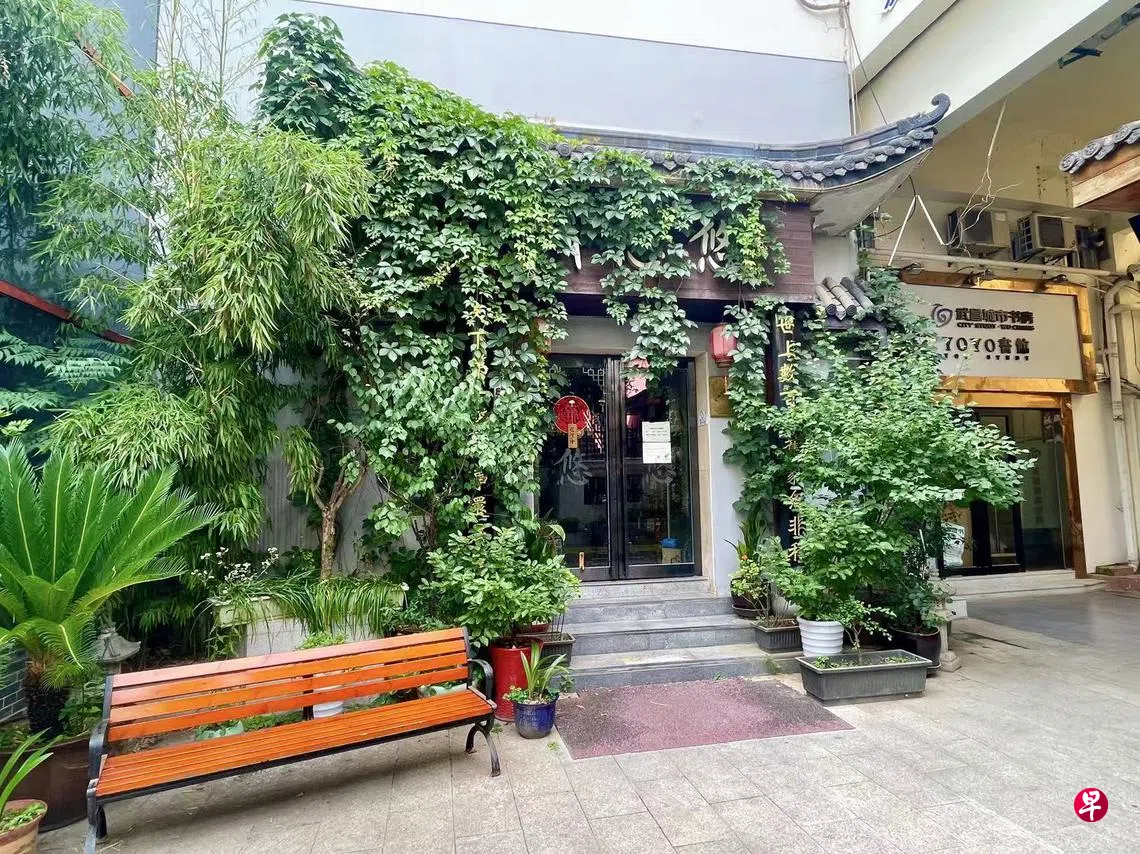 从牌楼进去,是一处静悄悄的院落,与隔壁户部巷完全是两重天。院子左手边,两扇玻璃门掩在高高的绿色藤蔓里,隐约可见“空悠悠”三个字。