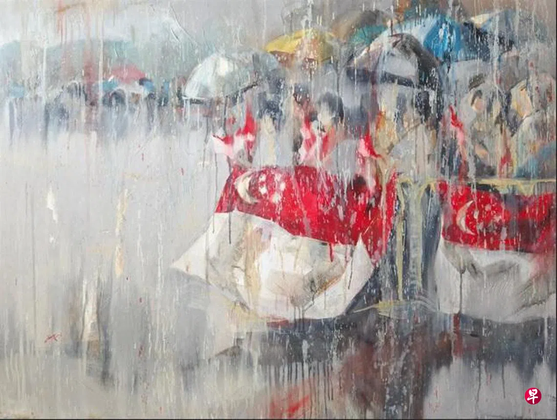 来自台湾,来新生活十年的艺术家张慧芳说:“我的油画描绘了李光耀先生离我们而去的那一天,人民的眼泪和那天的大雨,永远纪念着我们深深敬重的领导人。”另一系列炭粉画作“坚持到底”(To the end)的创作灵感来自李光耀的一句名言——许多人可以开始,但很少有人能坚持到最后,向李先生对自己信念的坚定不移致敬。