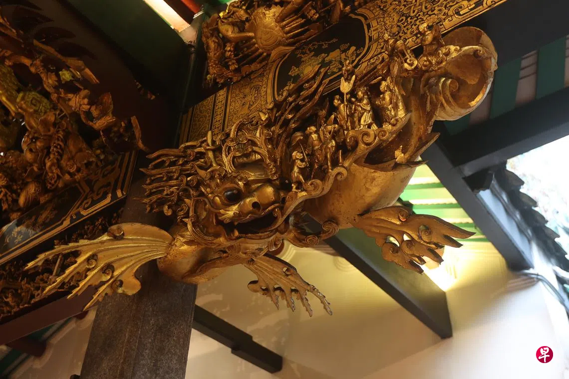 庙宇巨匾下的两侧门柱,以红漆金字注写着两行字,总结了百年古庙施民精神,度世态度,像写进了时光的刻痕,跨过这个门槛,庙内一层层展开的空间,与一副副巨匾对应而在,“泽遍天南”“觉世牖民”“德大为山”“帝德同沾”等,这些都是沐恩弟子敬奉而生感谢苍天之物,都收编在傅吾康和陈铁凡合编的《马来西亚华文铭刻萃编》,庙里有多少件文物毁于一夕,多个匾额、捐款碑、神案刻文和石柱刻文,玄天上帝、大伯公和谭公爷烧成焦黑一身。